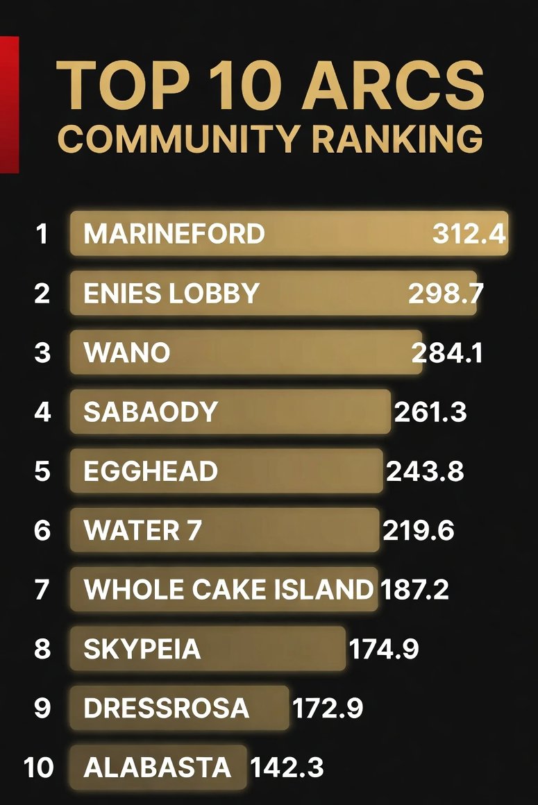 🚨#ONEPIECE COMMUNITY RESULTS! TOP 10 ARCS ranked by YOU🔥 Thank your🙏for submitting your list!