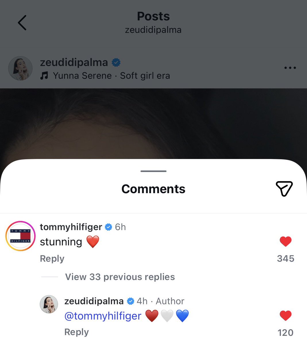 We simply cannot overlook all the incredible things happening to Zeudi personally and professionally. Tommy Hilfiger has 15.2 million followers but only follows 347 people and takes the time to post on Zeudi’s personal shots. Try not to say 👑! #zeudiners
