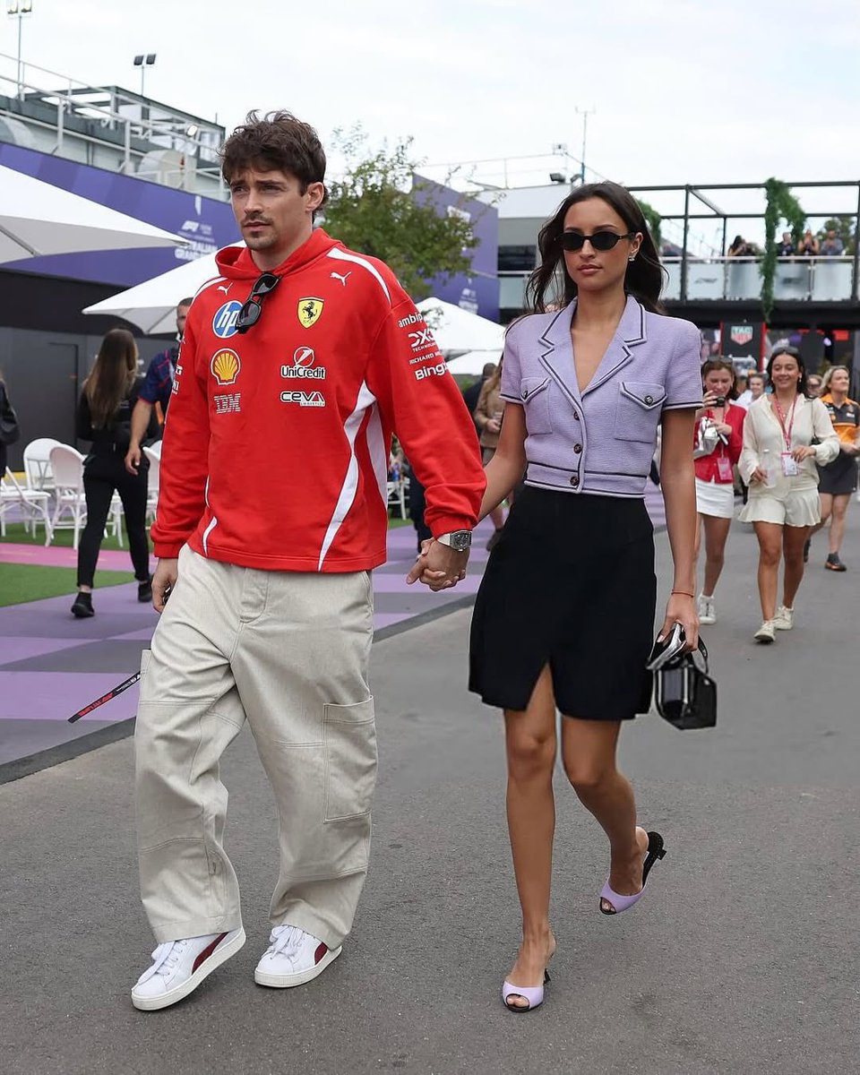 alexandra leclerc attending quali day during the australian gp 2026; wearing a purple cropped bouclé jacket from chanel spring/summer 1995 collection + the manolo blahnik jadaron 70 leather mules in lilac. — this is a win for the it girls & fashion enthusiasts. 🪻 ۫ ׅ ୨୧