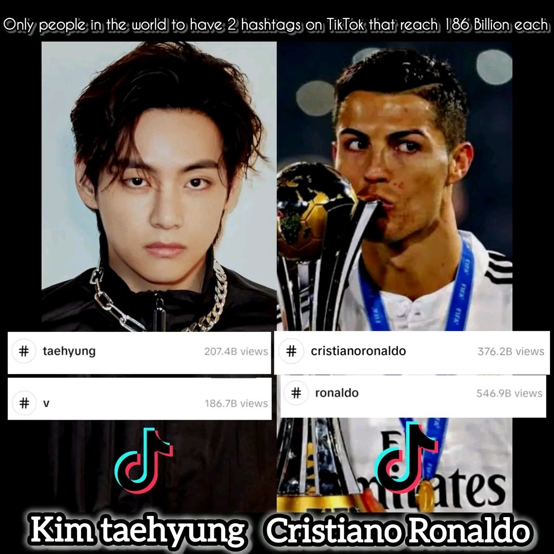 #V and Cristiano Ronaldo are the only people in the world to have 2 hashtags on TikTok that reach 186 Billion views 🔥🔥 Taehyung just needs some efforts from #HYBE it's not hiding Taehyung, no mistreatment 😶🌫️ equal lyrics and equal screen time ... And most importantly no
