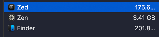 I can't believe my code editor @zeddotdev takes up less RAM than @Apple's finder😂