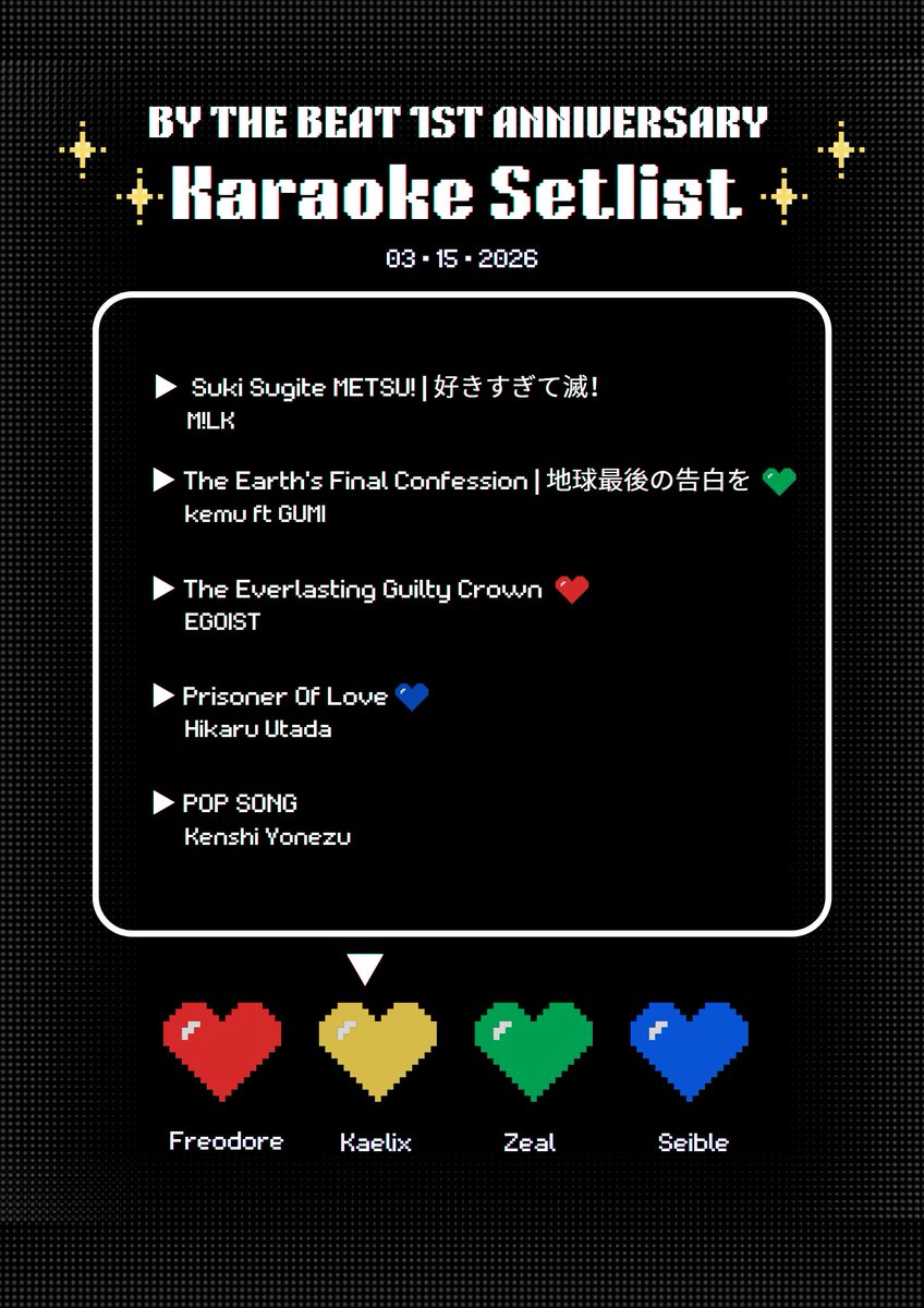 🎫🕶️ Karaoke Setlist 3.15.2026 ✨ OTSU KAELIX 💛 for By the Beat Relay Karaoke 🎤 #hikaelix #BYTHEBEAT1stAnniversary
