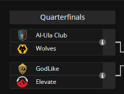 Predictions for Quarterfinals: Alula 1-3 Wolves GodL 3-1 Elevate (note that the winner of these two matches will indirectly qualify for LAN)