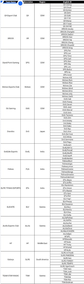 Here is the roster of all teams in CDM S11