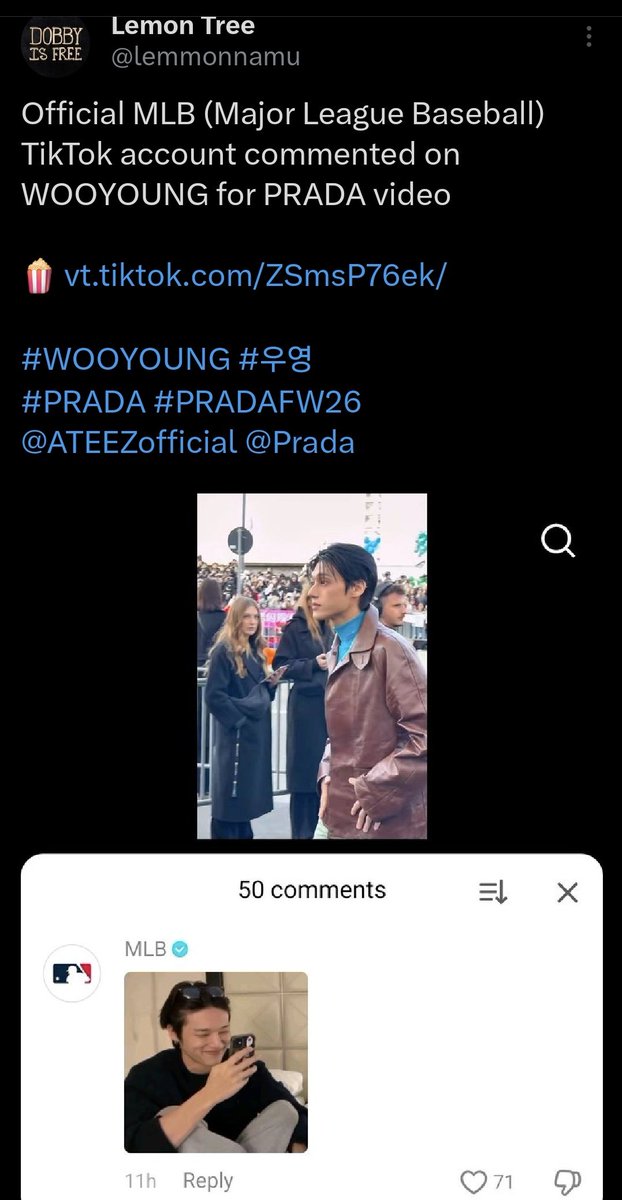 MLB coming for that #1 WOMMY spot like they have been showing wooyoung support since his PRADA appearance, made four tiktoks about him and one of it being on their pinned and now followed him alone on their instagram account