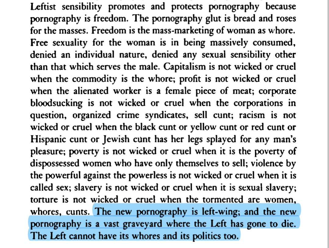 "The Left cannot have its whores and its politics too" Pornography, Chp 6