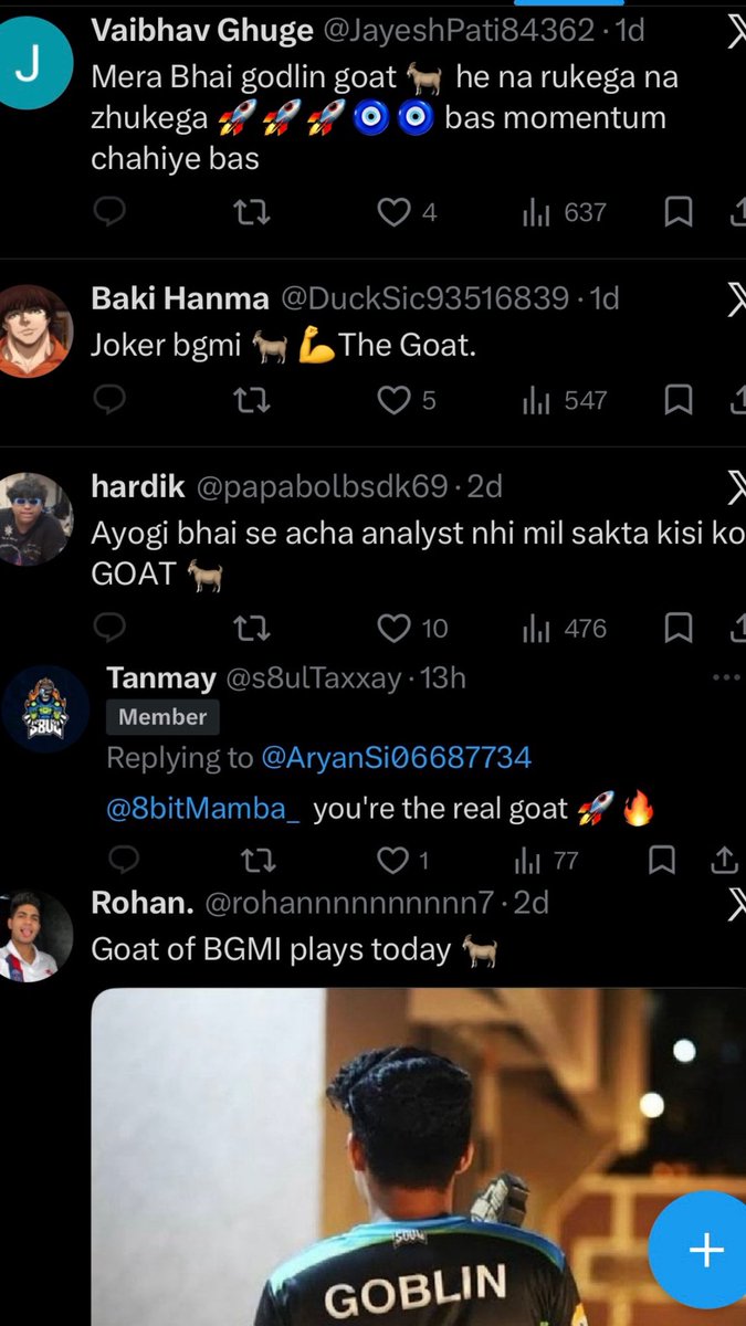 Soul Fans’ Full Week Schedule:— >Monday- Mortal is 🐐 >Tuesday- Goblin Is 🐐 >Wednesday- Nakul is 🐐 >Thursday- Joker is 🐐 >Friday- Harish Ji👨🍳 is 🐐 >Saturday- Rutuja Bhabhi💃 is 🐐 >Sunday- Thug Bhai cooked🥵🐐 -Soul Fans and their Baap Badalne ki aadat will never get old!🙏