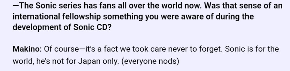 I also felt like adding onto this, but Sonic isn't just for Japan or the US, he is for the world as said by Sonic Team.