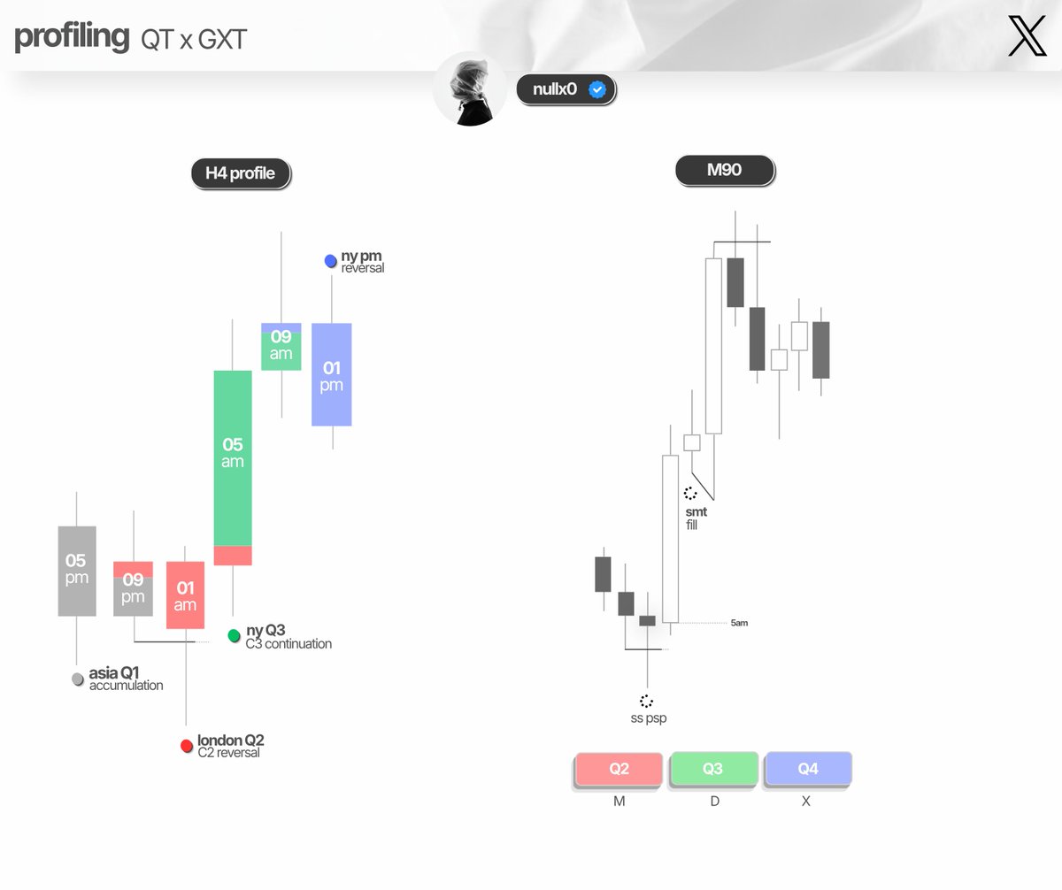 The power of profiling using logics combined QT x GXT You can easily identify Q1's (A or X) through GXT's logic and AM's gem. Trade the reversal/continuation using QT's logic. Study