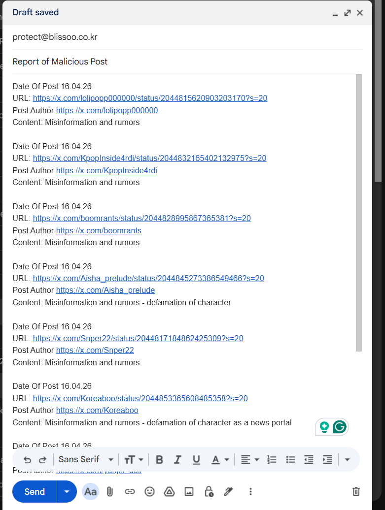 Please start reporting all the posts throwing dirt on Jisoo on this email: [email protected] @officialBLISSOO