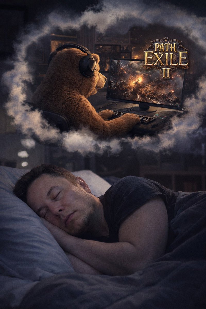 Work has been keeping @elonmusk so busy that he hasn’t had time to dive into PoE2, even with all the new updates. Deep down, he must be dying to log in. 😂 Bearly Legal 🐻⚔️