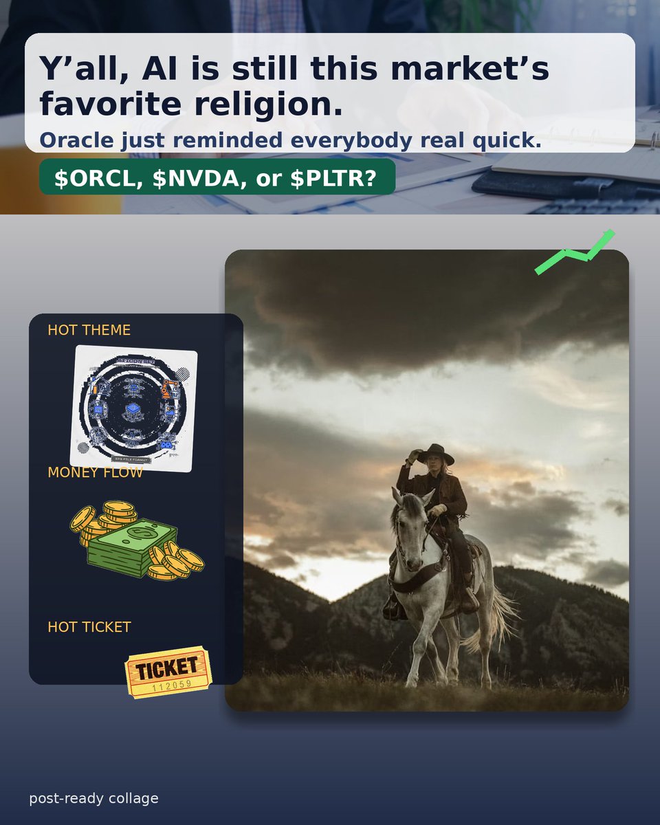 Y’all, AI is still this market’s favorite religion. Oracle just reminded everybody real quick. $ORCL, $NVDA, or $PLTR? #StockNews #USStocks #DayTrading #FinTwit