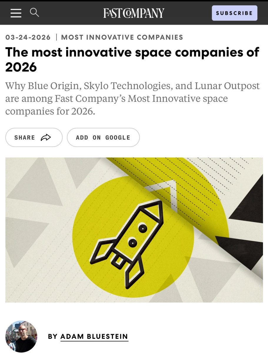$ASTS: AST SpaceMobile was just named to Fast Company’s list of the World’s Most Innovative Companies for 2026.