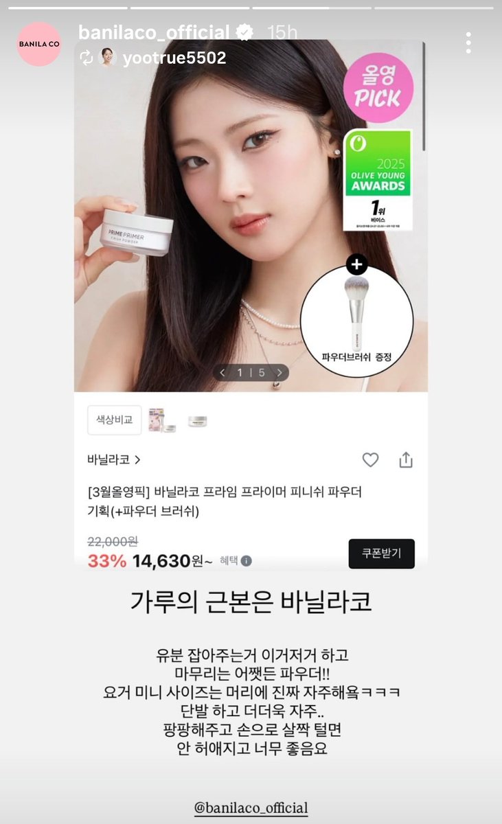 banila co shares on their stories a post from a borean beauty influencer where she talks abt the product promoted by ruka