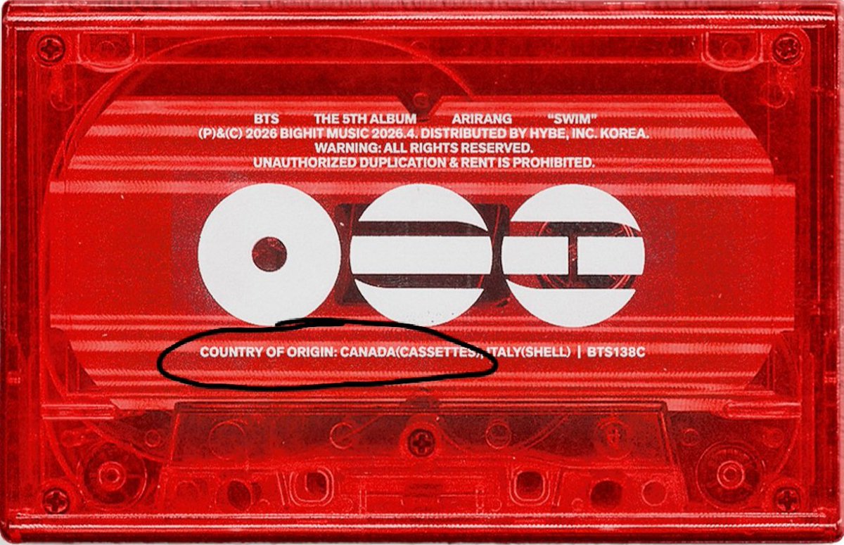 The cassettes say country of origin Canada but they aren't in our BTS store. We have a literal nationwide villian story! 😭😭😭