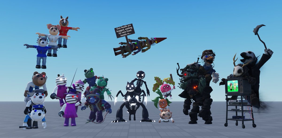 Added : - The 3 others 64 skins (no Nor body outta TV, he was hiding) - that famous idea from @CyberblueYT - Decaying Infected dumbly T-flying with France colors on shirts (et ouais j'suis français) and here's why I couldn't add Gus :/ #piggy