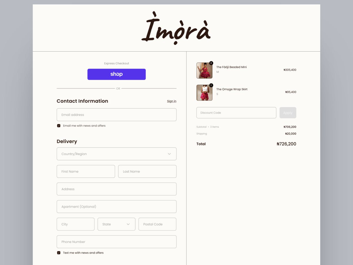 Good morning designers! The checkout page for Ìmọ́ra✨️