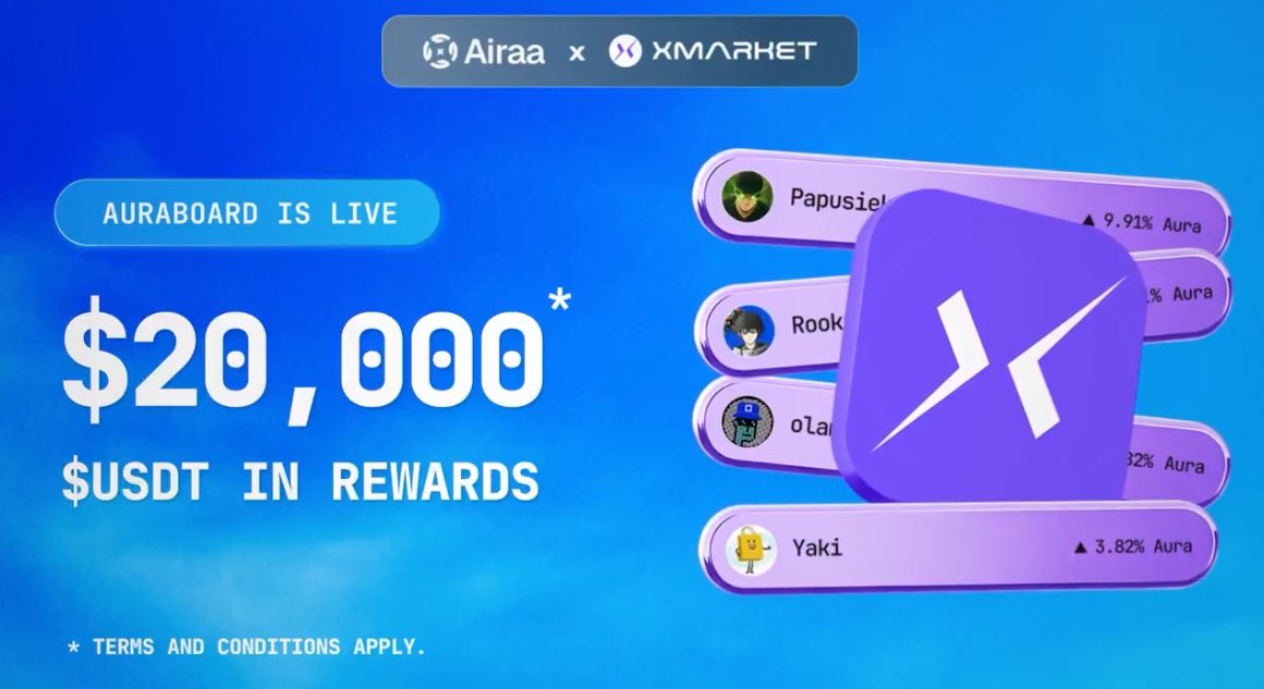 A new campaign just went live on Airaa Airaa HQ launched the Auraboard for @Xmarketapp Xmarket is a real time prediction market. You can trade your insights across crypto sports politics tech and culture. You can also create your own markets and earn fees. The campaign runs
