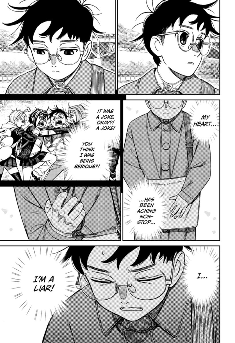 It's so good to see Momokarun back on their bs But, man, the fact Okarun's feelings cause him literal heartache is BEYOND romantic. Every move he makes cements him further into "ultimate loverboy" status #Dandadan228