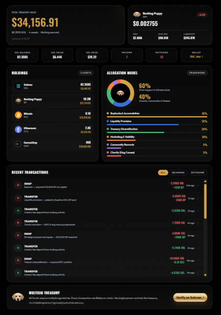 COMING SOON - Live Treasury Dashboard The pack has always said every penny is accounted for. Now we're building the page to prove it. We're adding a full Treasury Dashboard to the website. A live, real-time view of everything held in the multisig wallet. No screenshots. No