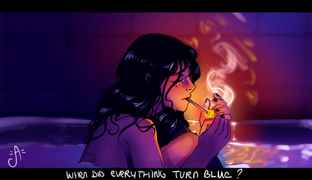 "I try to live in black and white, but I′m so blue." - Blue by Billie Eilish #mitsuaya #mitsuayafanart