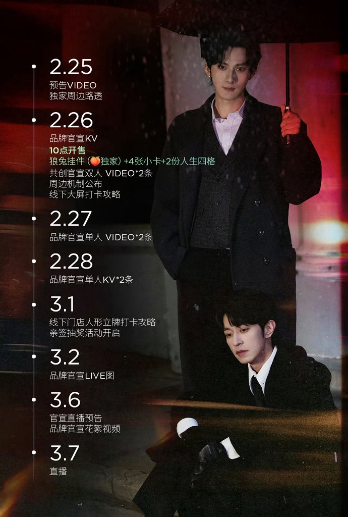 Official announcement and sales on the 26th 10:00 The merch includes wolf & rabbit keychains, 4 photo cards, and 2 life photostrips. The wolf & rabbit keychains are taobao exclusive — don’t place your order at the wrong web store And limited quantities may apply on the day