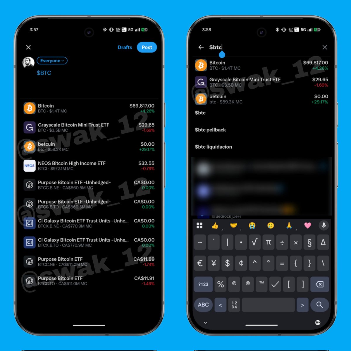 BREAKING: @X finally started working on cash tags on android. Both on post composer as well as search page. { Screenshot from 11.80.0-beta.1 - New X Android }