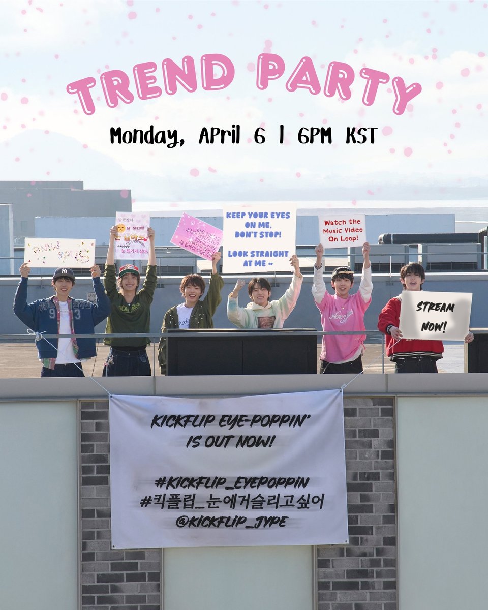[📢] NOTICE WeFlip, it’s D-DAY! 🎉16 hours until “Eye-Poppin’” drops! Check the event hashtags below, we’ll start trending once it’s released. Please read the guideline first so we can trend effectively. #KickFlip #킥플립 #キックフリップ @kickflip_jype