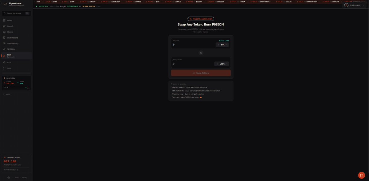 Bookmark it. Pigeon Aggregator is now live. You can now trade every Solana token directly on the platform. If you are a Pigeon holder, using Pigeon Aggregator is more than a feature. It is your edge in the trenches. It is built to be fast, sharp, and