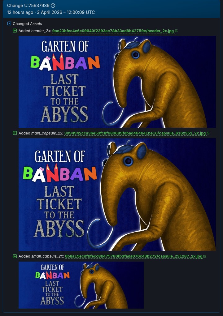 Some images for GOBB LTTTA have been changed on Steam DB 🖥️ To be honest, I don't know what was changed, but it's certain that this was an update done voluntarily by the developers ✍️ Game development seems to be progressing smoothly ✨ #GartenofBanban #GartenofBanban9