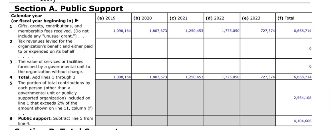 They also received $60,607 in federal grants in 2023, and $88k in 2024, and a total of $5 million in gifts, grants etc. However, their base capital, clearly displayed on the front page of their 2023 IRS filing but omitted from the 2024 tax documents: “THE GRANT/REVENUE CAME