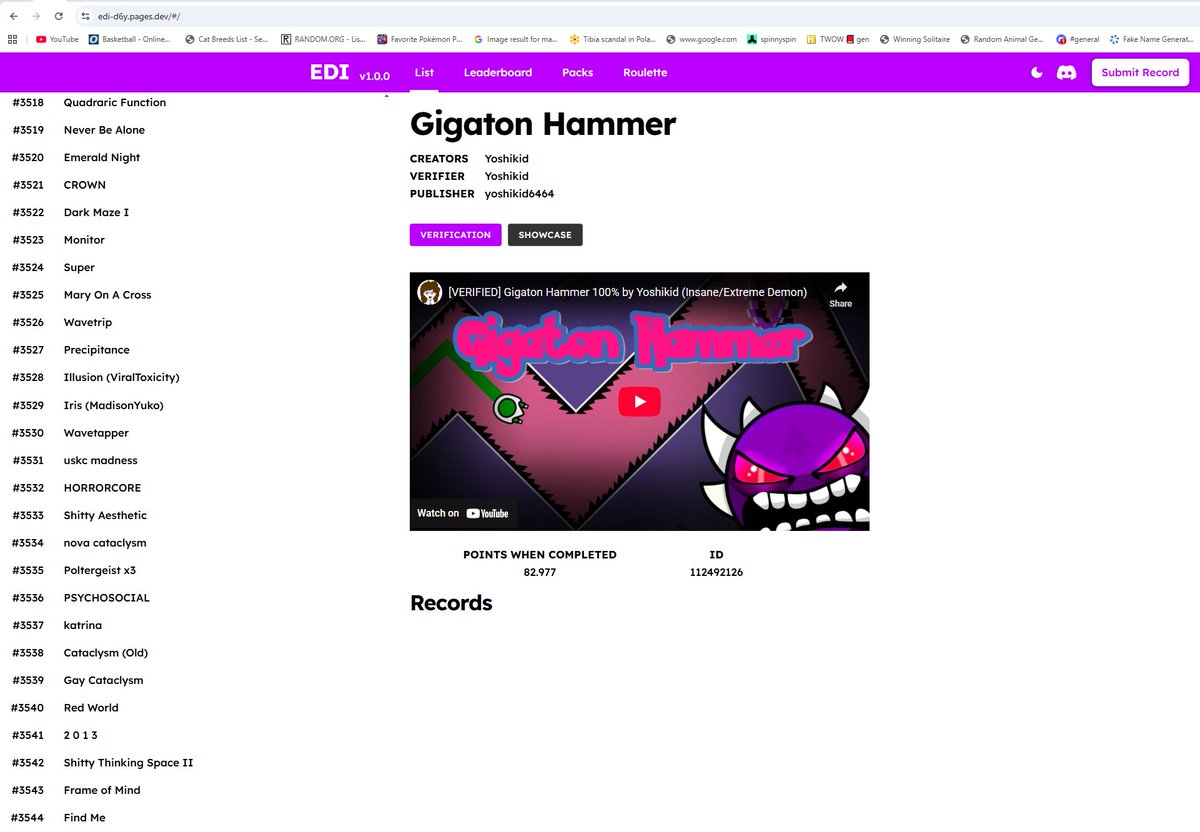 There's this FASCINATING list I saw called the "Extreme Demon Index" that seems to be ranking literally ANYTHING that can be considered extreme demon difficulty wise without ANY standards and they're fucking THOROUGH. Literally EVERYTHING that can be considered extreme is on here